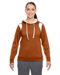 BODY: 7.5 oz., 100% polyester interlock double knit; LINING: 100% polyester tricot large hole mesh lining in hood; Peached finish on interior for added comfort in hood; Contrast inserts at front shoulders; Zippered front welt pockets; Flat White 3/8" drawcord; 2½" 1x1 rib-knit hem and cuffs;
