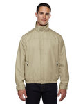 full-zip with translucent teeth; zippered front pockets; adjustable cuffs with snap closures; inside zippered security pocket; concealed front placket; elasticized hem;