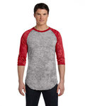 50% ringspun cotton, 50% polyester; Extensively weathered, sheer fabric for vintage look; One-of-a-kind pilling and striation; Regular fit; sideseamed; 3/4 raglan sleeves; Fabric-dyed, enzyme/silicone finish; Merrowed bottom hem; 1x1 burnout rib collar; Union dyed sleeves, may slightly tint garment body;